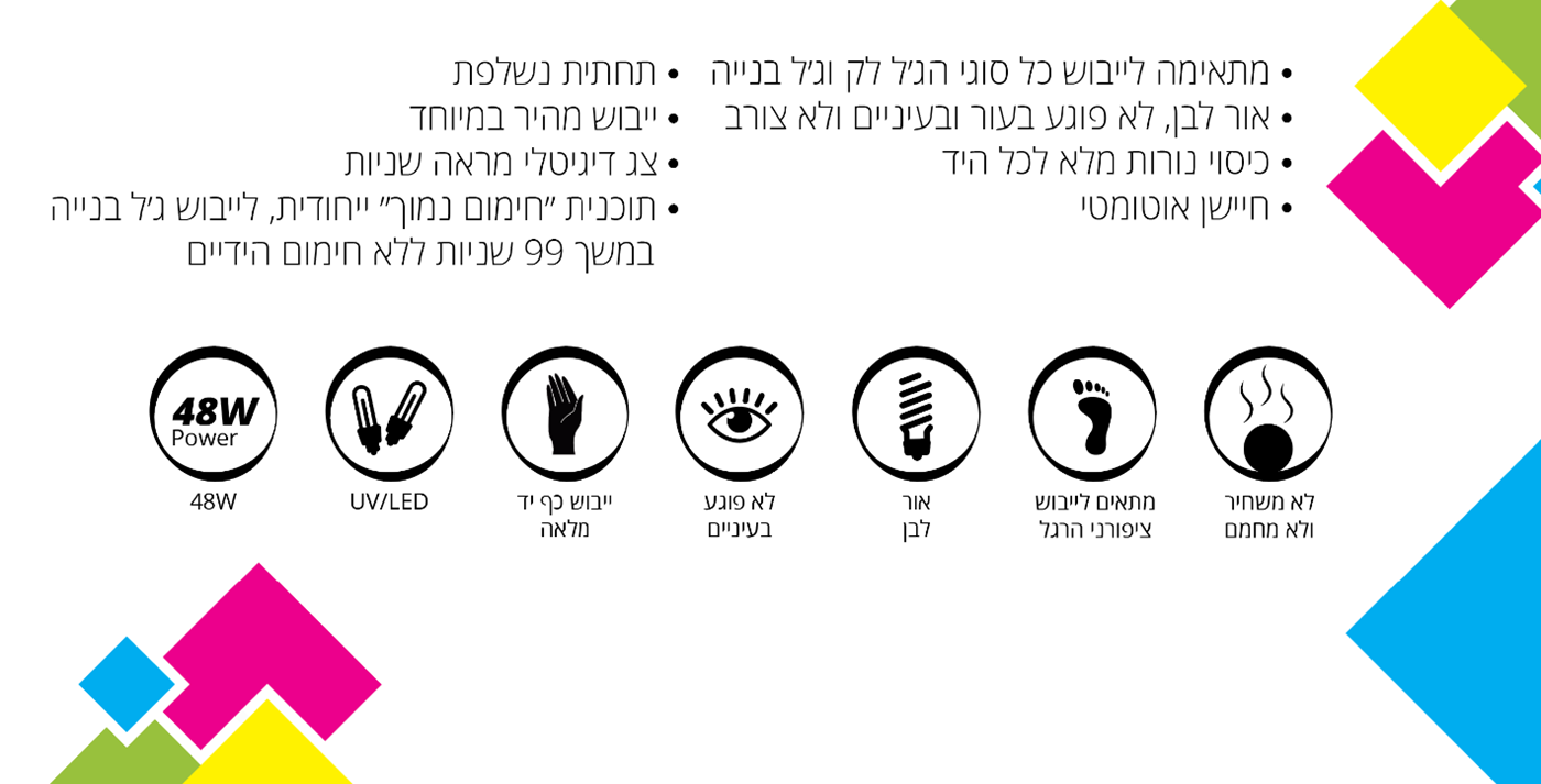 לאחר מריחת הלק הניחי את היד בתוך משטח הייבוש ובחרי את המצב הרצוי לך.